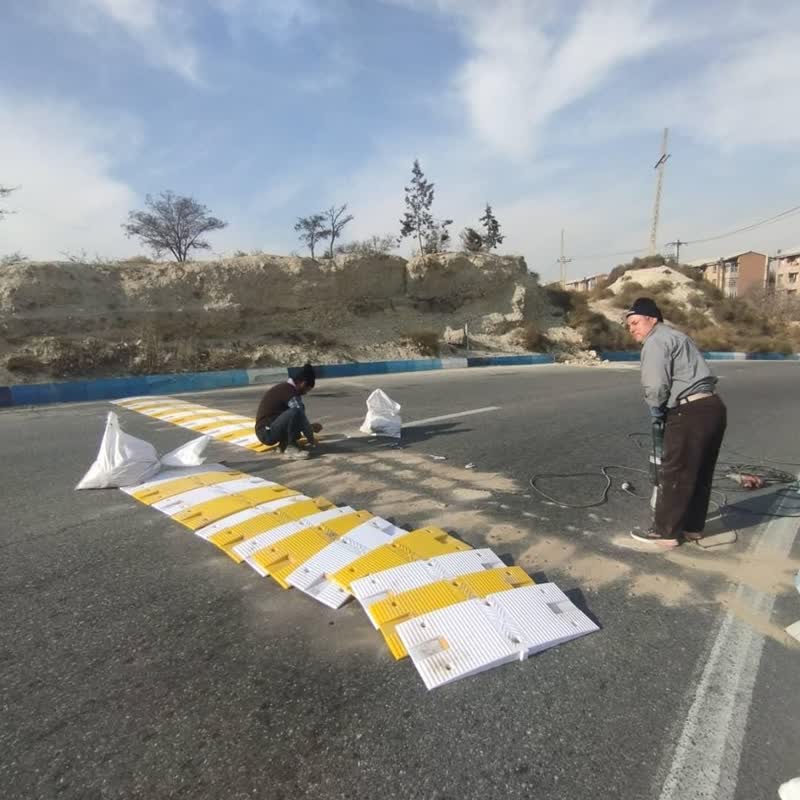 اجرای سرعتکاه پلاستیکی در خیابان نیلوفر برای ارتقای ایمنی تردد