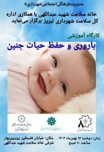 کارگاه آموزشی با موضوع «باروری و حفظ حیات جنین» با همکاری واحد فرهنگی ـ اجتماعی شهرداری منطقه ۸ و ادارهکل سلامت شهرداری تبریز در خانه سلامت شهید عبدالهی برگزار میشود.