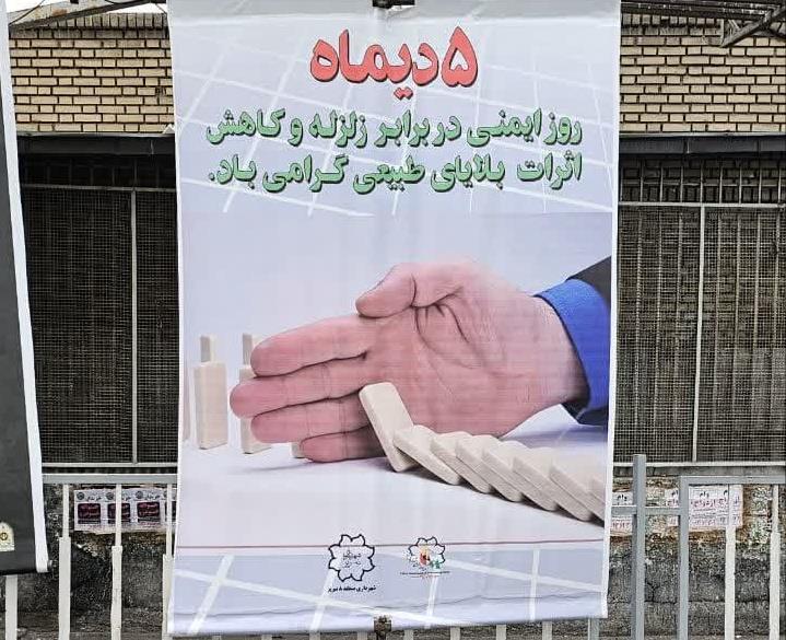 به مناسبت فرا رسیدن روز ایمنی در برابر زلزله و کاهش اثرات بلایای طبیعی، واحد مدیریت بحران شهرداری منطقه ۸ با همکاری امور ارتباطات، اقدام به فضاسازی معابر سطح حوزه کرد.