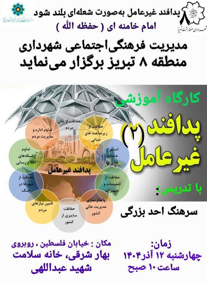 به گزارش آذرنگارنده به نقل از شهردار منطقه ۸ : واحد فرهنگی و اجتماعی شهرداری منطقه ۸ از برگزاری دومین کارگاه آموزشی پدافند غیرعامل در خانه سلامت شهید عبداللهی خبر داد. به گزارش امور ارتباطات شهرداری منطقه ۸، این کارگاه آموزشی روز چهارشنبه، ۱۲ آذرماه،,...